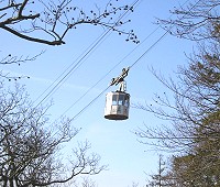 Burgbergseilbahn in Bad Harzburg. Während der Auffahrt zum 482 m hohen Burgberg, auf